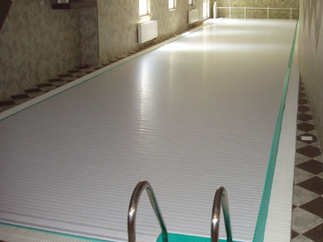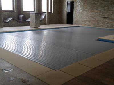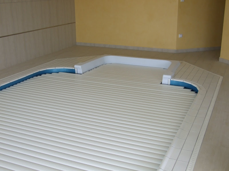 Táto alternatíva musí byť nainštalovaná pri vybudovaní bazéna. Patrí medzi najpohodlnejšie a najestetickejšie riešenia. Nestráca sa tým žiadne voľné miesto okolo bazéna a prekrytie bude "neviditeľné" v priebehu používania bazénu. Náklady na tieto prekrytia sú vyššie ako pri prekrytiach nad úrovňou vody. V tomto prípade by mali byť os z nerezovej ocele aj elektromotor silnejšie.